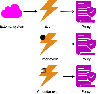 • A policy contains the decision on how to react to an event. (purple)