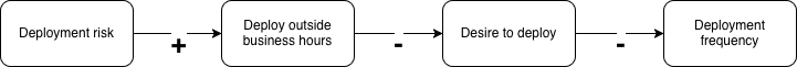 It’s hard to tell from a simple diagram like this how conflicting effects combine. The example CLD doesn’t tell us whether the practice of deploying outside business hours actually reduces or increases deployment risk, but at least it begs the question.