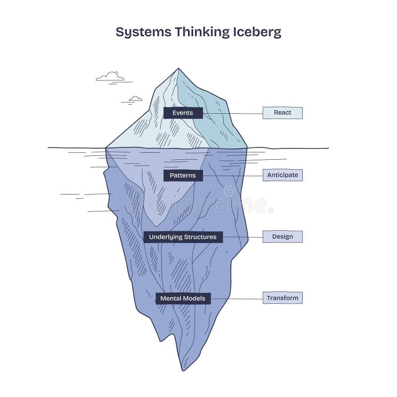 Instead of reacting to events, the iceberg model encourages us to look deeper to get better results. Let’s apply it to the practice of deploying code changes to production for a B2B SaaS company:
